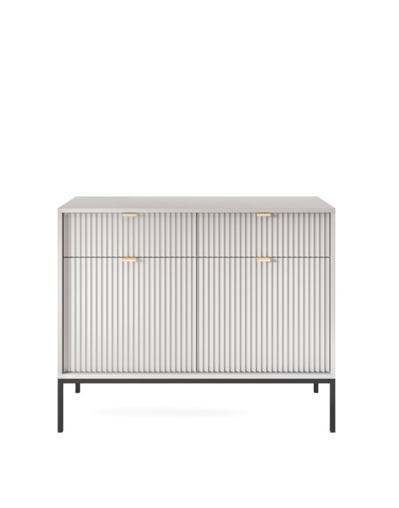 Komoda Nova šedá se zásuvkami (KSZ104) značky Piaski je elegantní a funkční kus nábytku, který se skvěle hodí do obývacího pokoje nebo ložnice.