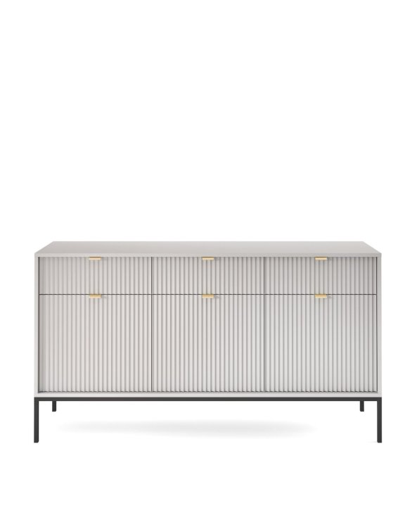 Komoda Nova šedá se zásuvkami (KSZ154) značky Piaski je elegantní a funkční kus nábytku, který se skvěle hodí do obývacího pokoje nebo ložnice.