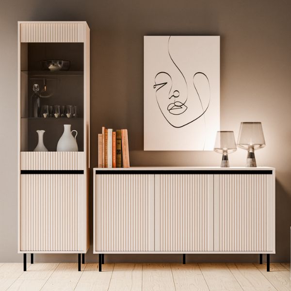 Komoda Osaka 3F v béžové barvě spojuje minimalistickou formu s precizním zpracováním a vytváří nábytek s výjimečným charakterem.