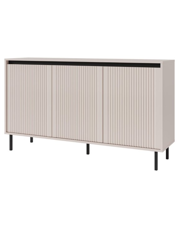 Černé kovové nožky o výšce 15 cm dodávají konstrukci lehkost a podtrhují moderní, elegantní vzhled komody.