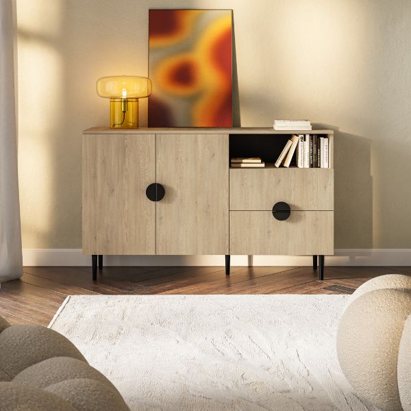 Komoda Osaka Dub Cremona představuje dokonalé spojení elegance, funkčnosti a vysoké kvality zpracování.