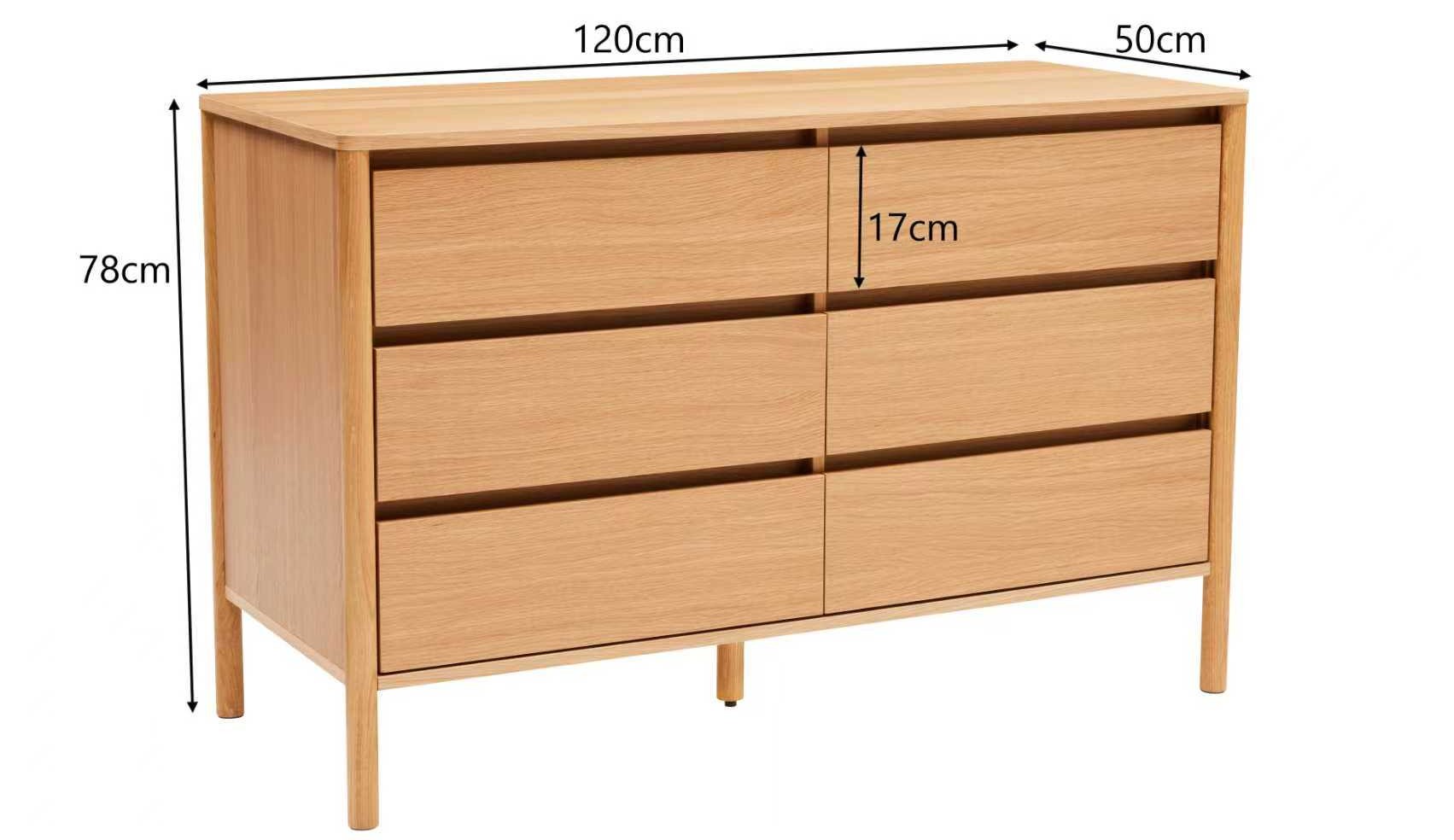| Komoda Blair se 6 zásuvkami (CD01), přírodní dub, 120 cm | 8621 Kč |