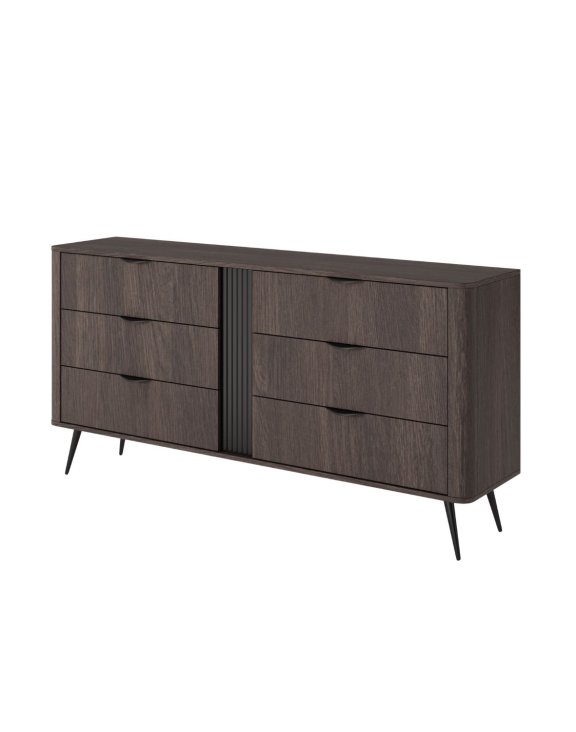 Vysoká komoda Veris B 2D v elegantním dekoru dub dunin s černými akcenty spojuje moderní design a funkčnost. Vsaďte na styl a pohodlí – vyberte si komodu Veris B 2D do svého interiéru!