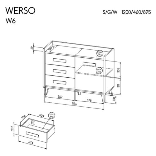 Komoda se zásuvkami Werso W6 spojuje moderní design a funkčnost. Je ideální volbou pro ty, kteří ocení jednoduché tvary, ale zároveň hledají něco, co v interiéru zaujme a dodá mu osobitý charakter.