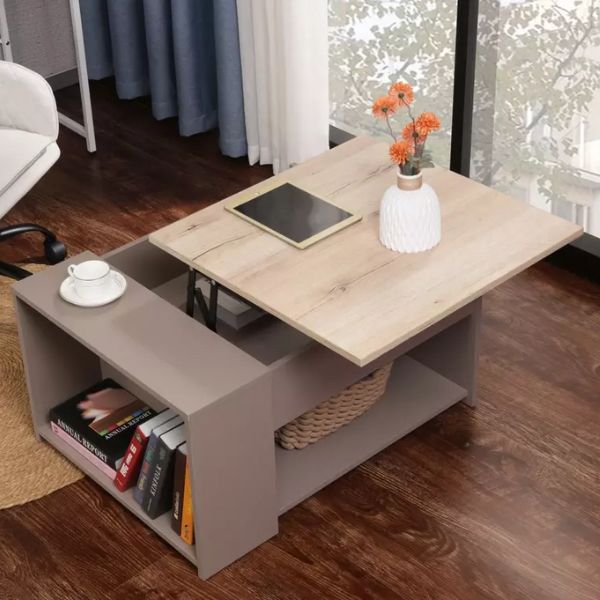 Díky zvedací desce, která se vysune až do výšky 56 cm, jej lze využít nejen jako konferenční stolek, ale také jako pracovní plochu, místo pro jídlo či notebook.