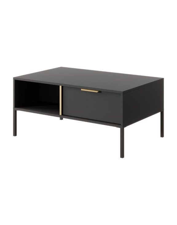 Moderní komoda Lars D o šířce 103 cm v antracitovém provedení kombinuje zlaté detaily, praktickou zásuvku a uzavíratelné skříňky. Díky kompaktním rozměrům se skvěle hodí do obývacího pokoje, předsíně nebo ložnice.