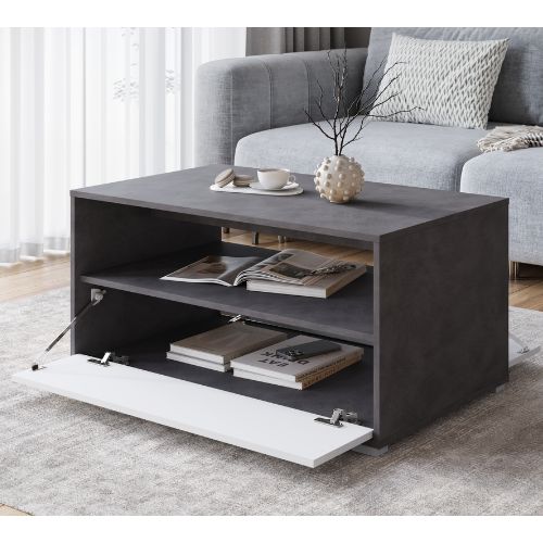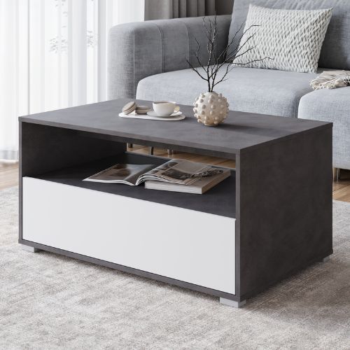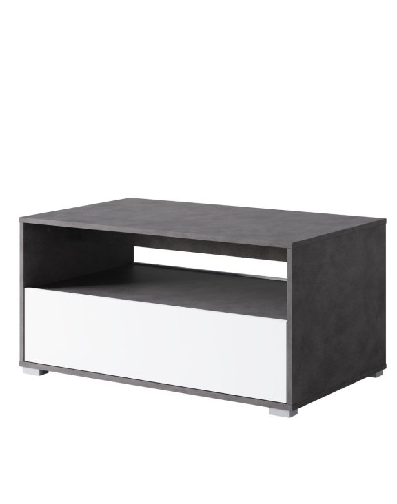 Konferenční stolek má jednoduchý, geometrický tvar v elegantním dekoru matera, který je doplněn bílými čely. Vzniká tak moderní a nadčasová kombinace, ideální do obývacích pokojů zařízených v moderním, minimalistickém i industriálním stylu.