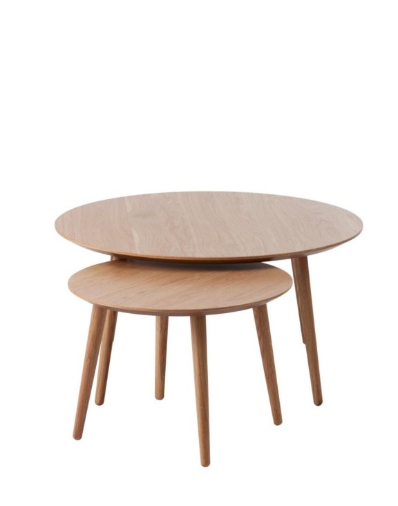 Sada se skládá ze dvou stolků různých rozměrů, které lze zasunout jeden pod druhý, což umožňuje úsporu místa nebo vytváření zajímavých aranžmá.