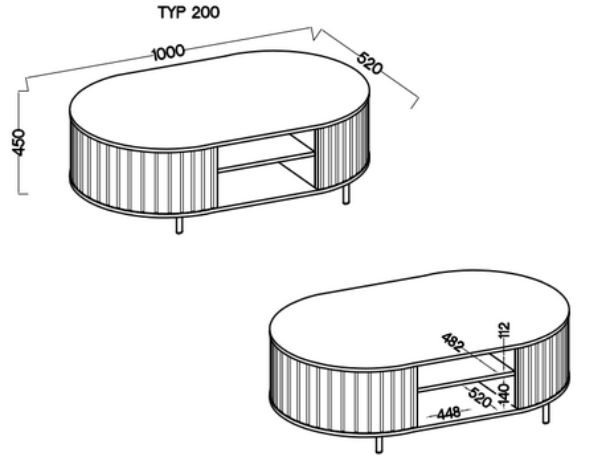 Konferenční stolek Ovalio (200) je ideálním doplňkem obývacího pokoje – skvěle se kombinuje s komodami, vitrínami i TV stolky ze stejné kolekce a vytváří jednotné, elegantní aranžmá.