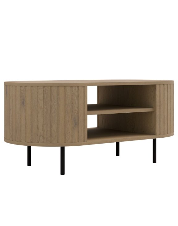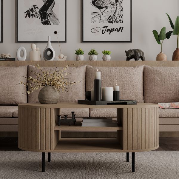 Konferenční stolek Ovalio (200) v provedení Dub Cremona zaujme oválným tvarem a jemným vertikálním frézováním, které mu dodává lehkost a osobitý charakter.