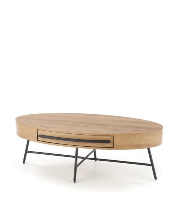 Stolek je vybaven také designovou zásuvkou, která nejen zvyšuje jeho funkčnost, ale zároveň slouží jako stylový dekorativní prvek. Úchytka zásuvky je navržena originálně, což podtrhuje důraz značky Halmar na detaily.