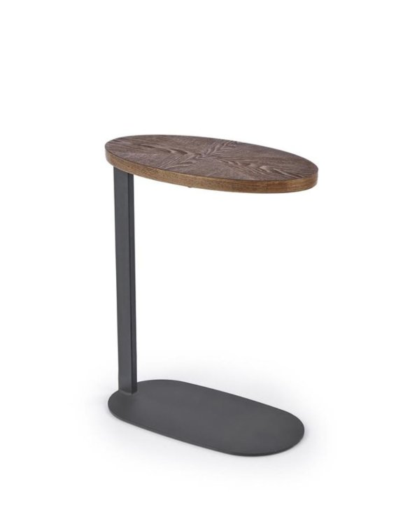 Deska stolu je vyrobena z dýhy MDF v barvě ořechu. Základna je ocelová, lakovaná černou práškovou barvou.