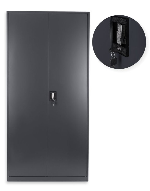 Kovová skříň v antracitové barvě je ideálním modelem pro ukládání šanonů, dokumentů, kancelářských potřeb i nářadí.
