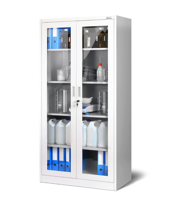 Skříň s prosklenými dveřmi najde využití i v kancelářích a v dalších objektech, kde je potřeba rychlého přístupu k dokumentům.
