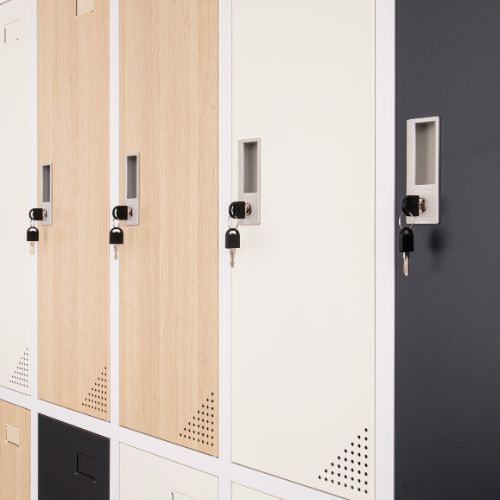 Každá přihrádka je uzamykatelná pomocí vačkového zámku, který zaručuje bezpečné uložení osobních věcí.