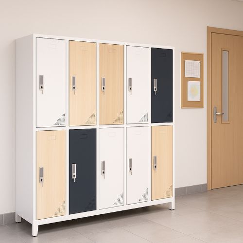 Kovová šatní skříň Oxford Blend je ideální volbou pro vybavení šaten ve školách, kancelářích, posilovnách nebo výrobních provozech. Byla navržena s ohledem na pohodlí uživatelů a dlouhou životnost – kombinuje moderní design s praktickými funkcemi.
