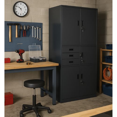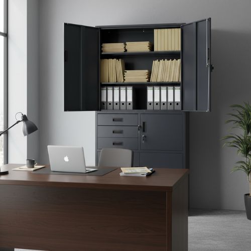 Kancelářská kovová skříň je funkčním řešením navrženým pro kanceláře, dílny, archivy nebo sociální prostory. Je to spolehlivý způsob, jak bezpečně a přehledně ukládat dokumenty, nástroje, kancelářské potřeby nebo pracovní oděvy.