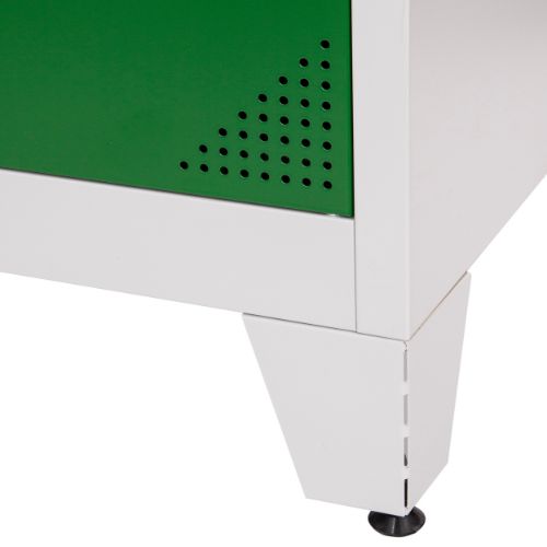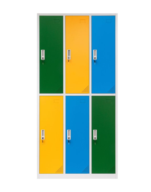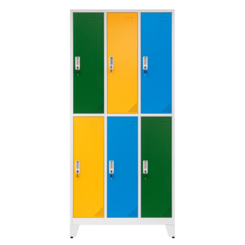 Skříň je vybavena 6 samostatnými přihrádkami, z nichž každá má vlastní vačkový zámek a dva klíče v sadě, což zaručuje soukromí a bezpečné uložení obsahu.
