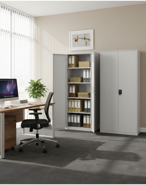 Kovová kancelářská skříň vytvořená s ohledem na potřeby kanceláří, archivů a administrativních prostor, kde je organizace a ochrana dokumentů klíčová. Její minimalistický design zaručuje, že se skvěle hodí jak do klasických, tak moderních interiérů.