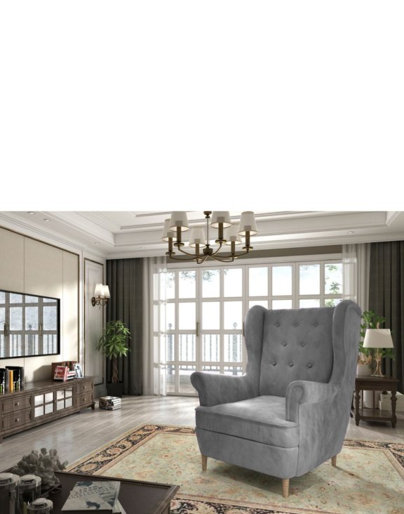 Křeslo ušák Aros 1F značky Eltap je produkt s mimořádnou elegancí, kterou zdůrazňují ozdobné knoflíky na opěradle.