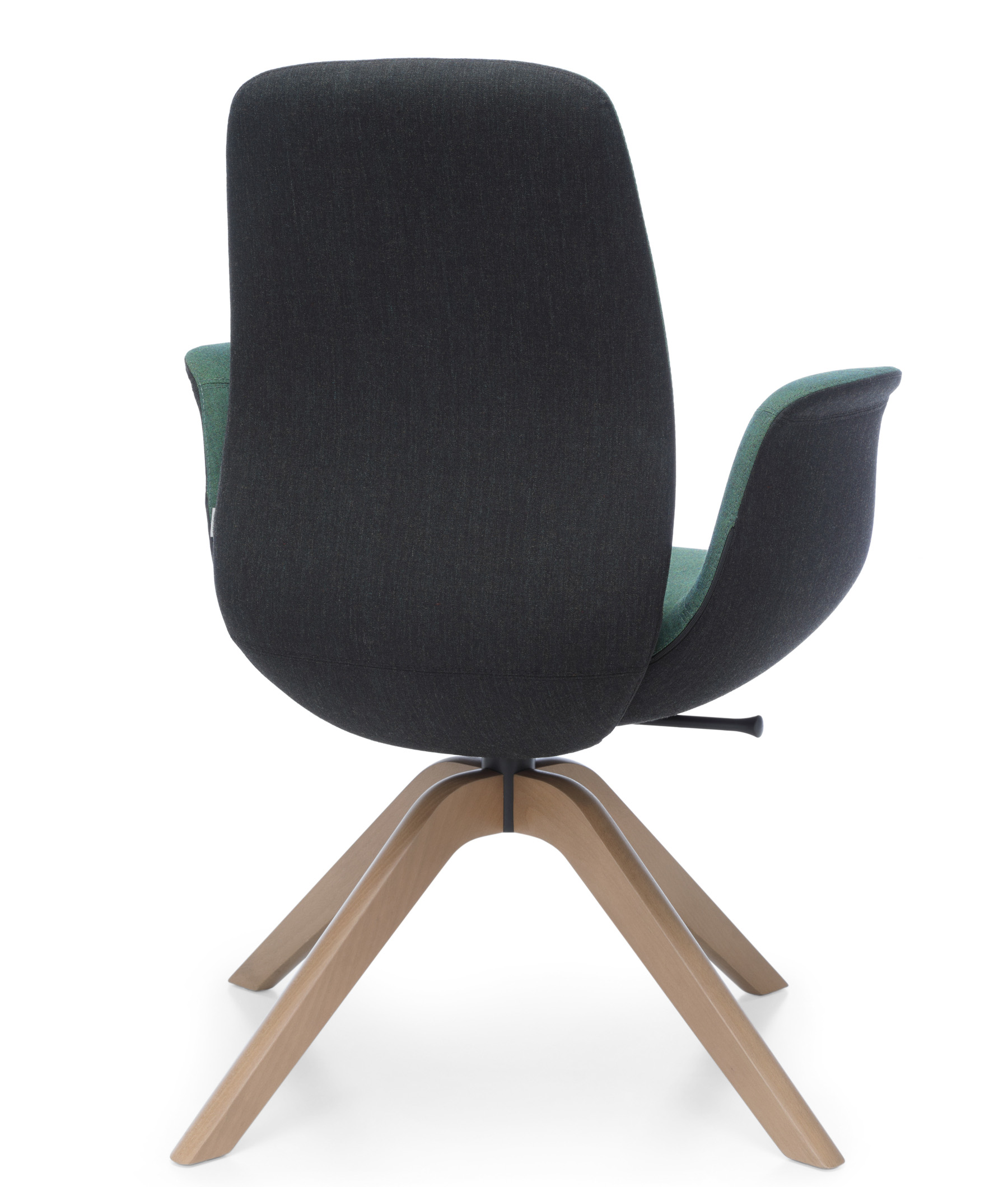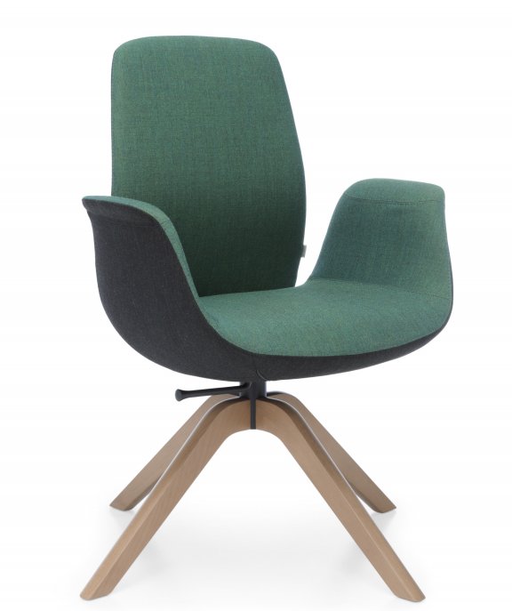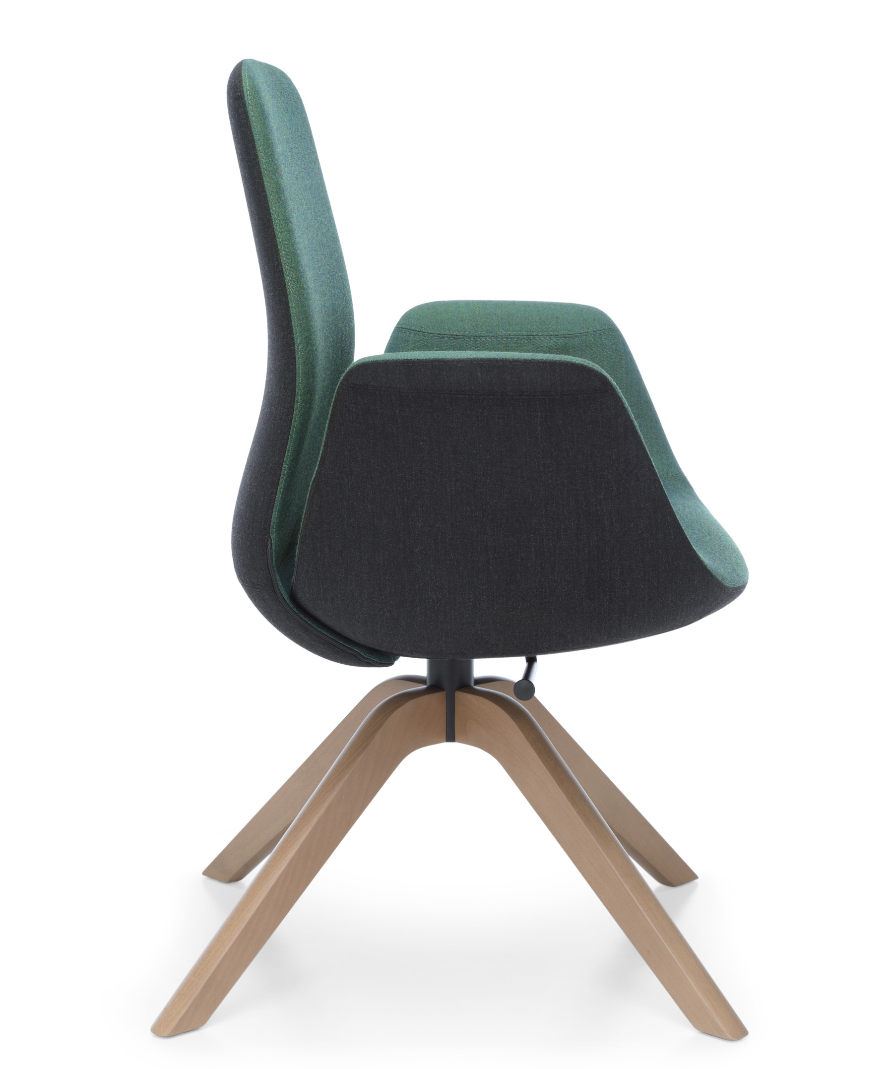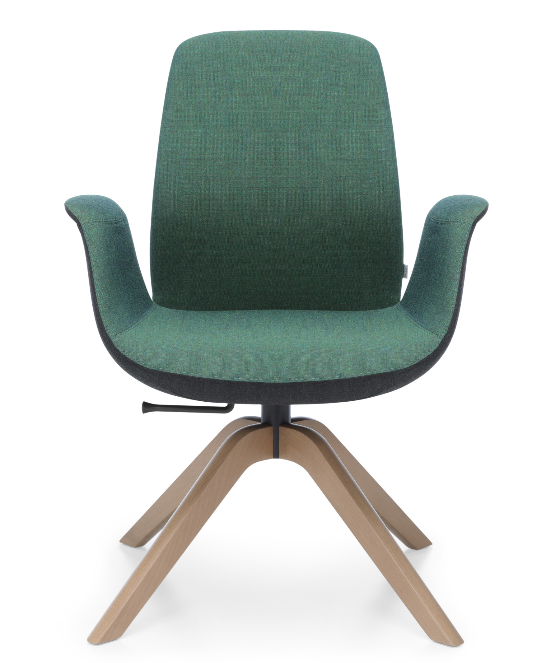 Elegantní a moderní křeslo ElliePro 20HW s dřevěnou konstrukcí. Model je otočný, vybavený nízkým čalouněným opěradlem a mechanismem Synchro Self, který je nenápadně integrován do sedáku.