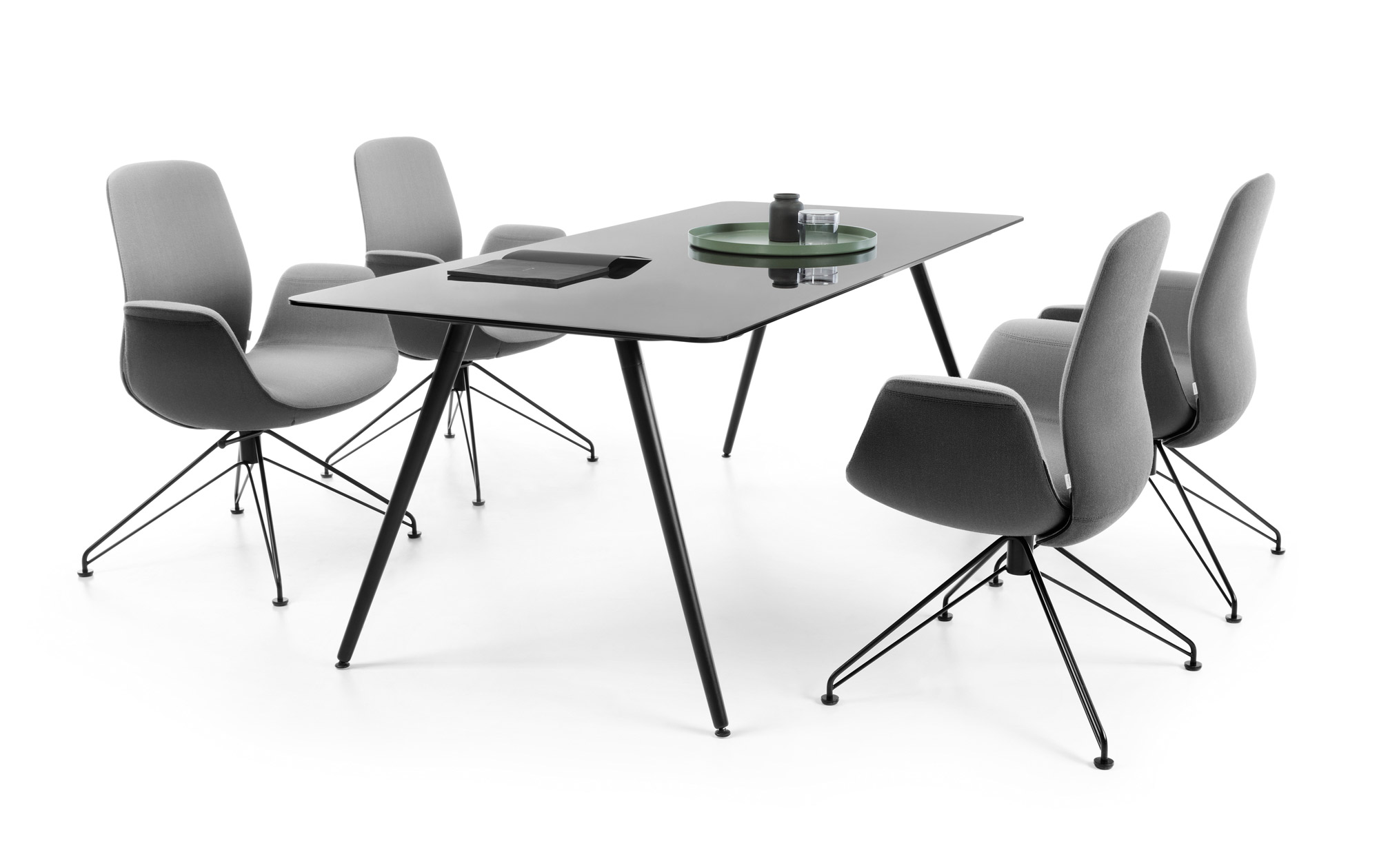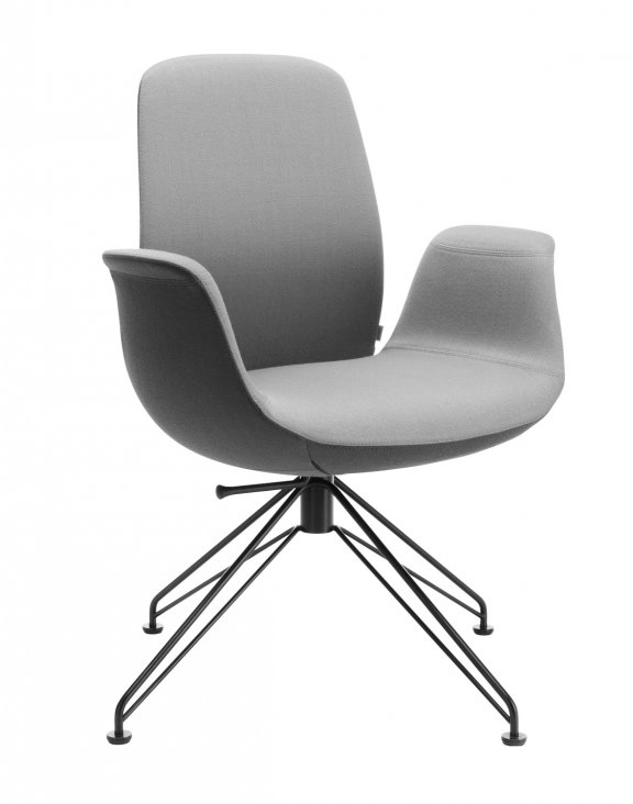 Představený model je otočný, vybavený nízkým čalouněným opěradlem a mechanismem Synchro Self, který je nenápadně integrován do sedáku.