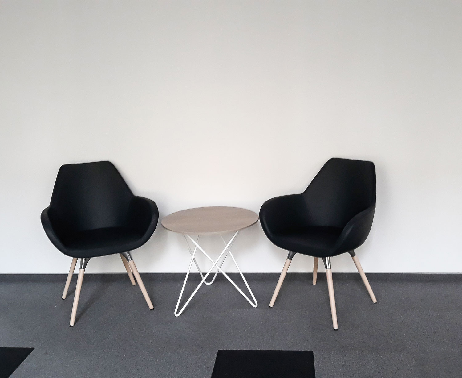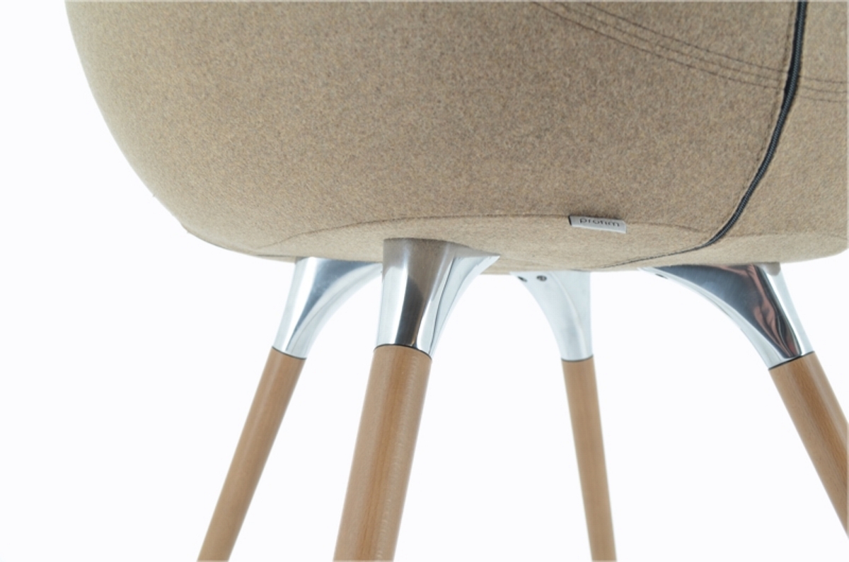 Čtyřnohá stabilní základna křesla je kombinací chromované oceli (lesklé) a dřeva, které je dostupné v několika odstínech – ty najdete v sekci MATERIÁLY (dřevo).