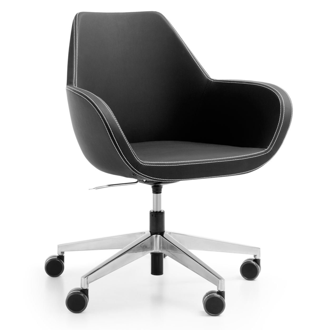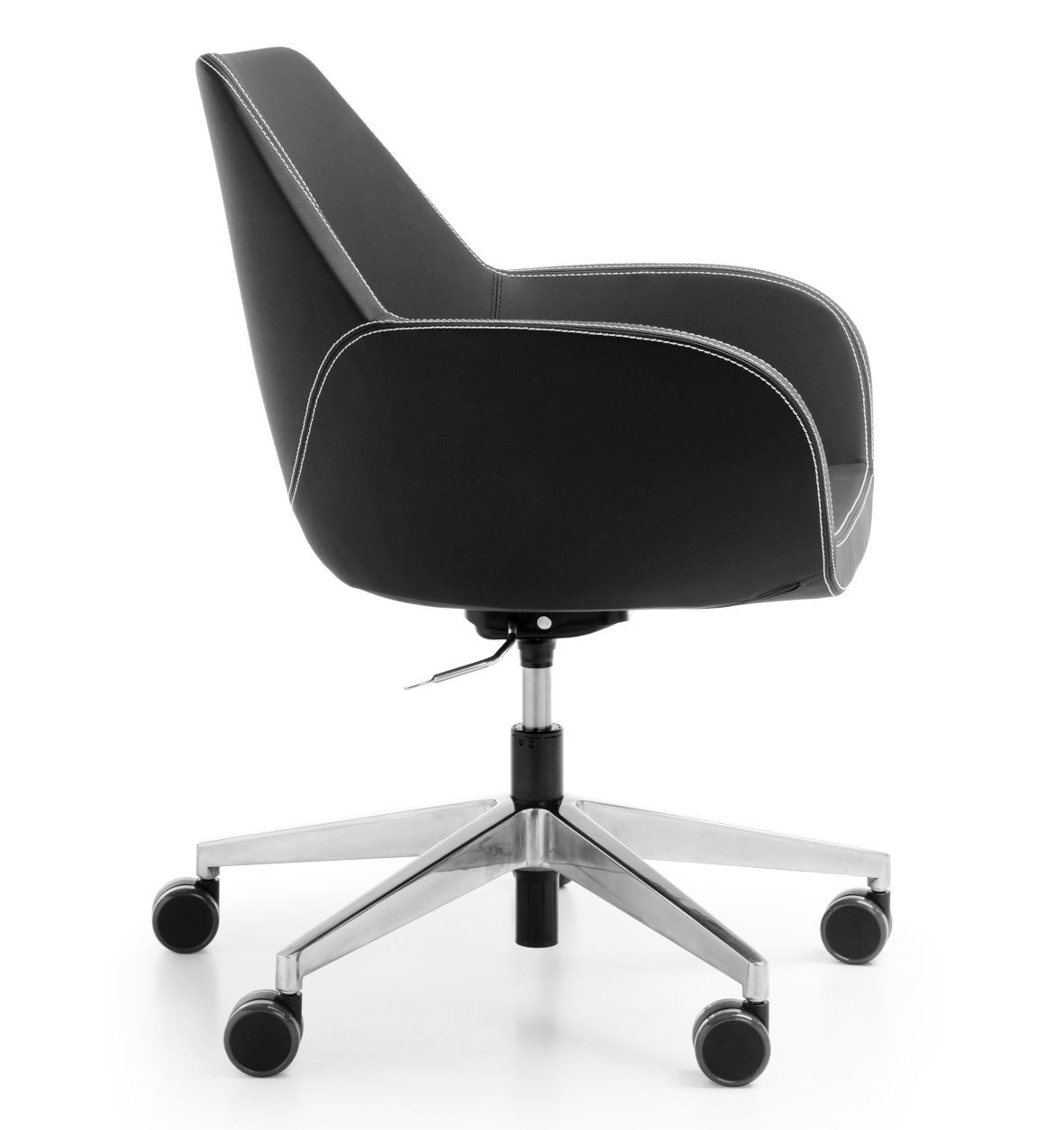 Pětiramenná pojízdná základna je dostupná ve dvou barevných provedeních: černá a leštěný hliník (chrom).