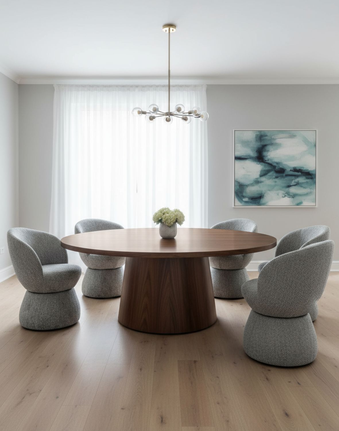 Neutrální šedý odstín látky se hodí do světlých, minimalistických interiérů i do elegantnějších prostor ve stylu modern classic nebo boho.