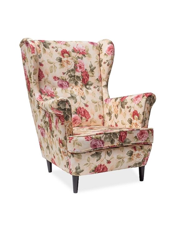 Čalouněné příjemnou tkaninou v krémové barvě s výrazným květinovým vzorem se stane ozdobou každého obývacího pokoje, ložnice nebo stylové čítárny.