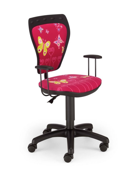 Dětské otočné křeslo s čalouněným sedákem a profilovaným čalouněným opěradlem.