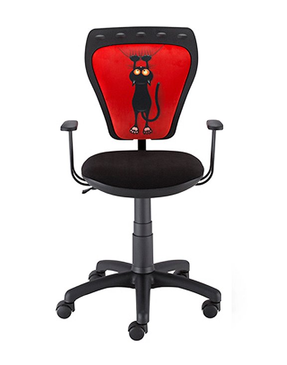 Dětské otočné křeslo s čalouněným sedákem a profilovaným čalouněným opěradlem.