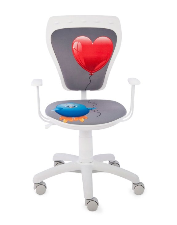 Dětské otočné křeslo s čalouněným sedákem a profilovaným čalouněným opěradlem.