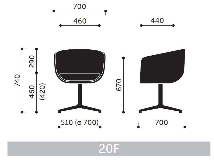 Představená verze 20F označuje menší velikost křesla a podnož se čtyřramenným křížem.