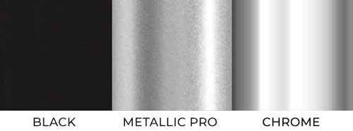 Kovové nohy křesla jsou vyrobeny z pásoviny o rozměrech 40 × 12 mm a dostupné ve třech barevných variantách: