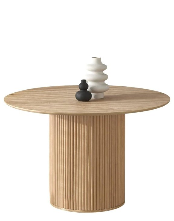 Jeho základnu zdobí lamely, které stolu dodávají skandinávský vzhled.