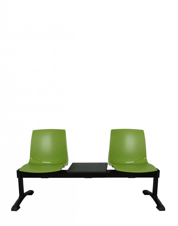 Odolná a stabilní konstrukce se 3 sedáky a dvěma odkládacími "stolečky". Je vyrobena z oceli, práškově lakovaná v černé barvě.