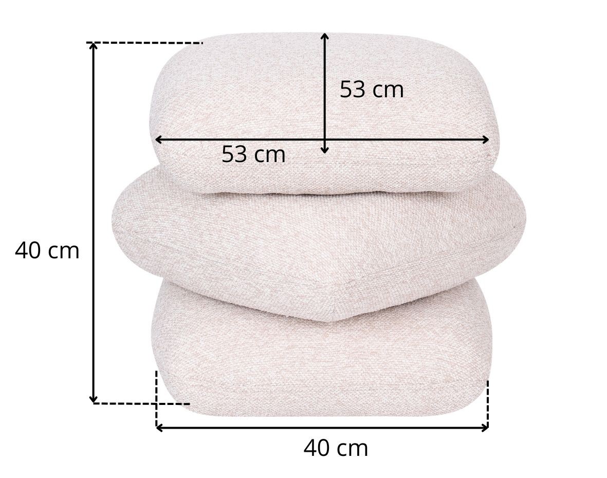 Rozměry: šířka sedáku 53 cm, hloubka sedáku 53 cm, výška 40 cm, šířka základny taburetu 40 cm