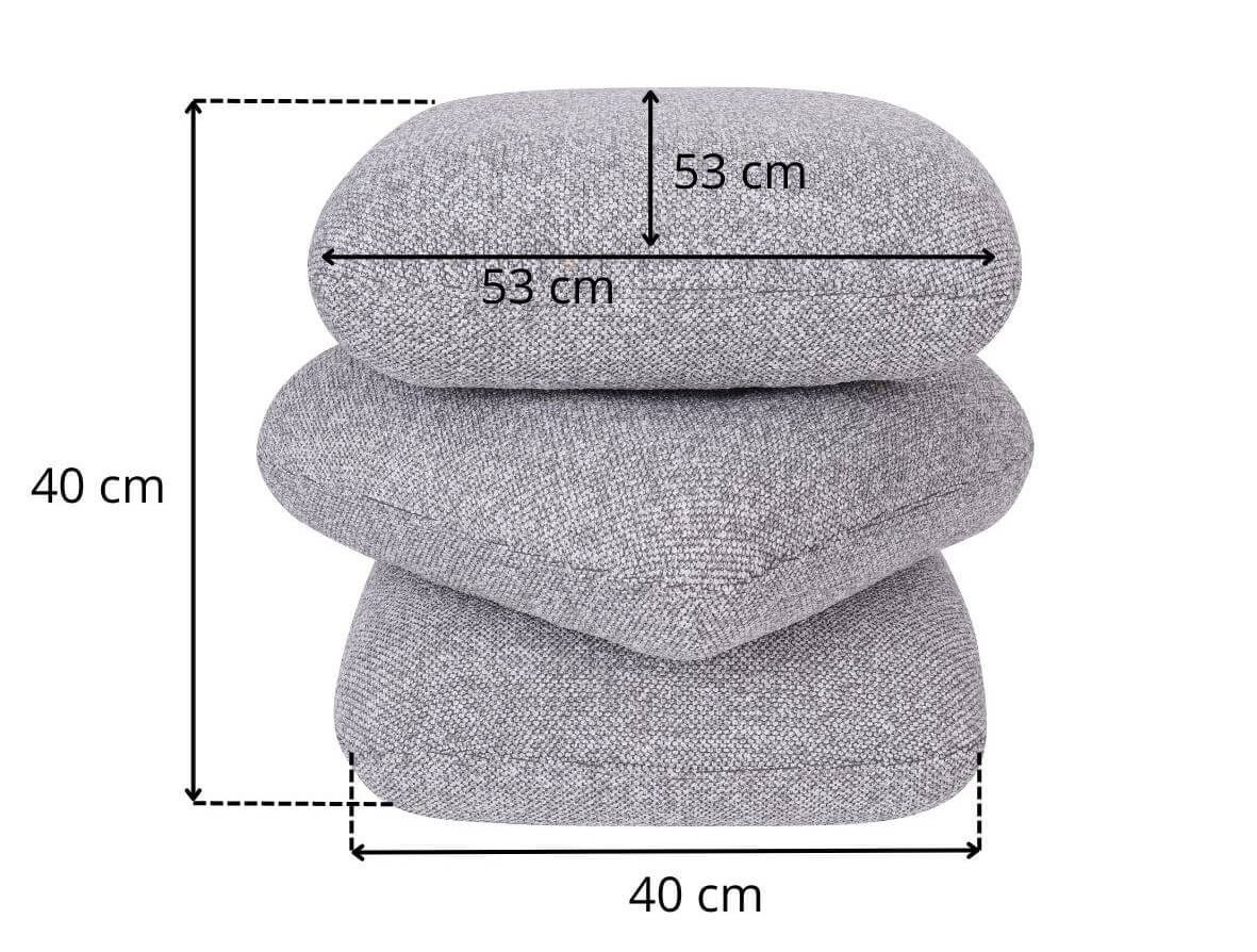 Rozměry: šířka sedáku 53 cm, hloubka sedáku 53 cm, výška 40 cm, šířka základny taburetu 40 cm