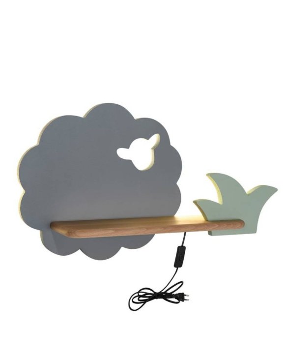 Lampa je perfektní k dětské postýlce. Polici lze využít jako další místo pro oblíbenou hračku.