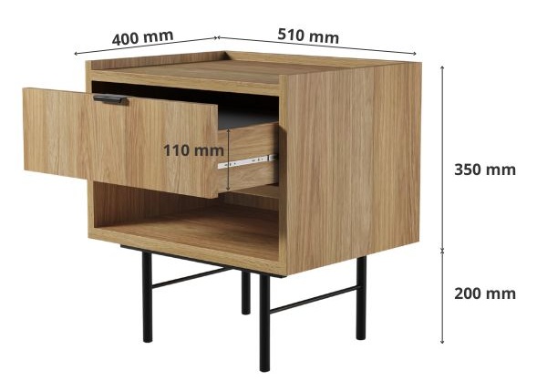 Praktické rozměry – díky kompaktnímu provedení se stolek snadno vejde i do menších ložnic, přičemž nabízí vysokou funkčnost.