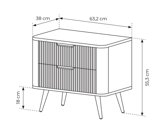 Komoda Lante D představuje stylové spojení rýhovaných čel MDF, jemné béžové barevnosti a zlatých kovových detailů. Praktické uspořádání se skříňkou a třemi zásuvkami nabízí pohodlný úložný prostor a činí z komody ideální doplněk do obývacího pokoje i ložnice.