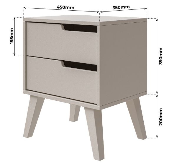Díky rozměrům 45 × 35 × 55 cm se stolek skvěle hodí k posteli a nabízí pohodlné místo pro lampičku, knihu nebo sklenici vody.