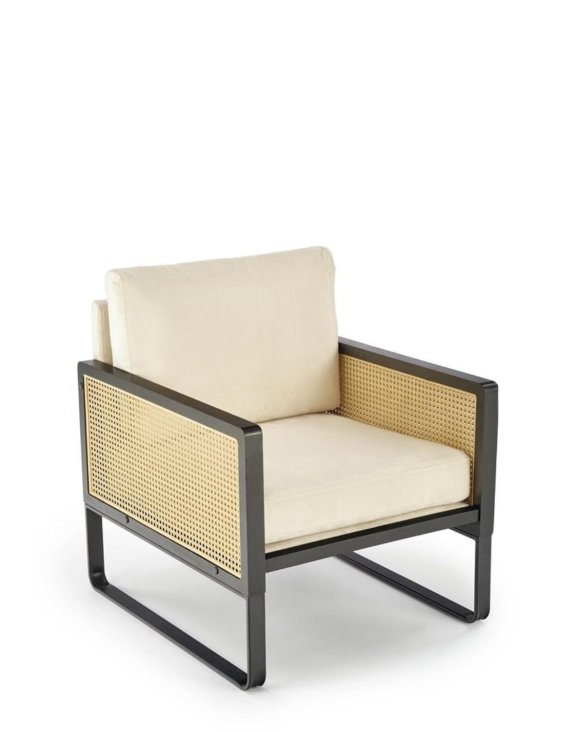 Odpočinkové křeslo Ilario od značky Halmar je jedinečný kus nábytku, který vyniká svým přirozeným a rustikálním boho stylem.