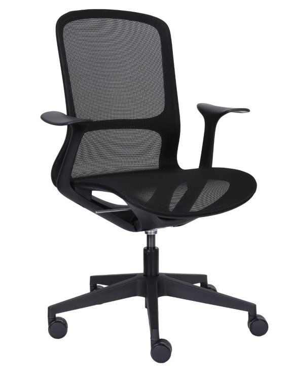 Sedák a vysoké opěradlo jsou vyrobeny z odolné a pružné síťoviny v univerzální černé barvě.