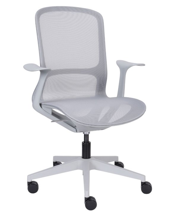 Sedák a vysoké opěradlo jsou vyrobeny z odolné a pružné síťoviny v univerzální šedé barvě.