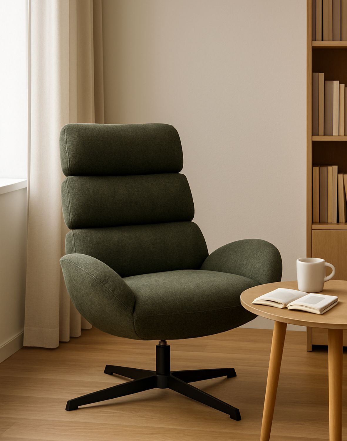 Odpočinkové křeslo Cloud značky Avida Design s vysokým segmentovým opěradlem je ideální volbou pro ty, kteří oceňují jak ergonomii, tak estetiku.