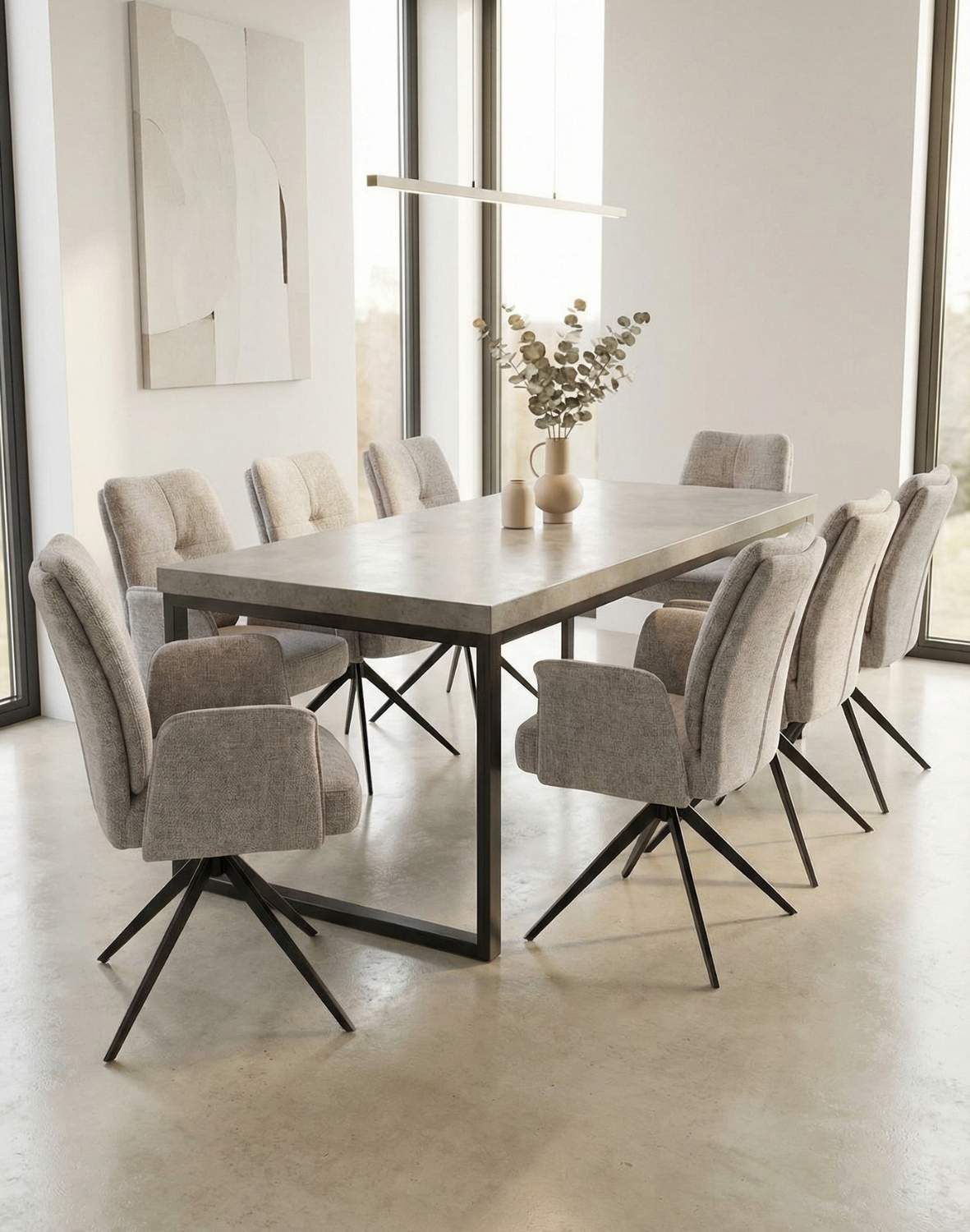 Otočná jídelní židle Stanley s područkami značky Avida Design s funkcí návratu do původní polohy (auto-return) je elegantním řešením, které dokonale doplní každý interiér.