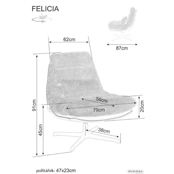 Křeslo Felicia je kombinací moderního stylu, pohodlí a funkčnosti – ideální volba do obývacího pokoje, kanceláře, pracovny nebo odpočinkové zóny.