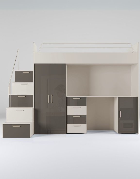 Sestava nábytku Raj 4 je komplexní systém „vše v jednom“, navržený pro maximální využití prostoru v dětském nebo studentském pokoji.